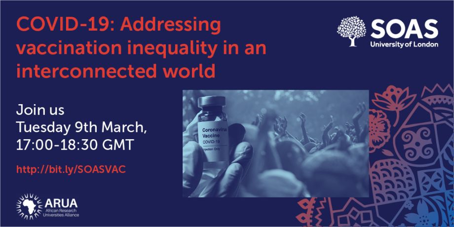 SOAS University of London in partnership with the African Research Universities Alliance (ARUA) is hosting leading figures from the World Health Organization (WHO) and International Centre of Insect Physiology and Ecology (ICIPE) for a discussion on vaccination inequality in an interconnected world. Contributing to the conversation will be the Chief Economics Commenator of the Financial Times.